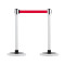 [BS-SW] Slow Retractable Belt Stanchion, Crowd Control Rope Barrier Stand, Set of 2, PEFE Coating Belt, Water Resistance, Simple & Easy Assembly, EGI Snow White (Red)